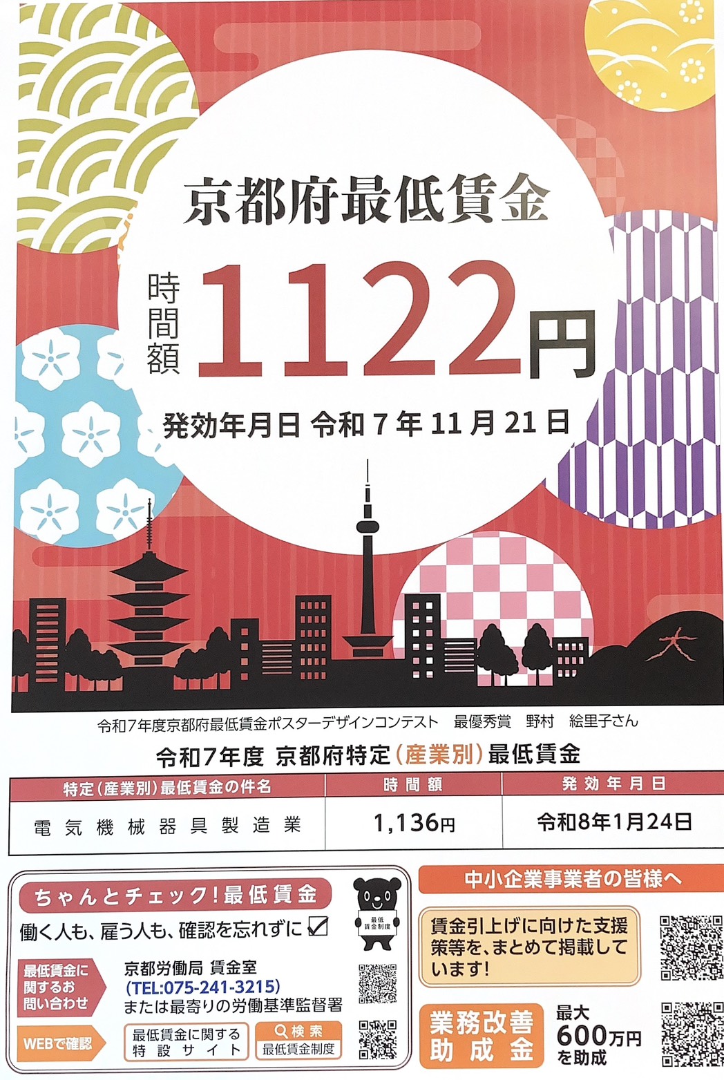 最低賃金が変わりました。