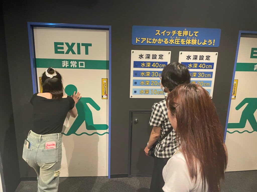 防災センターでは、震度7の地震、暴風、洪水、土砂災害など、さまざまな災害体験ができました。